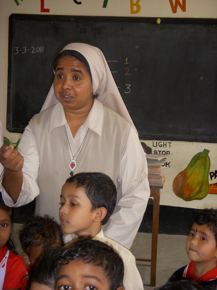 Con Suor M. Agnes nella classe di bambini più piccoli