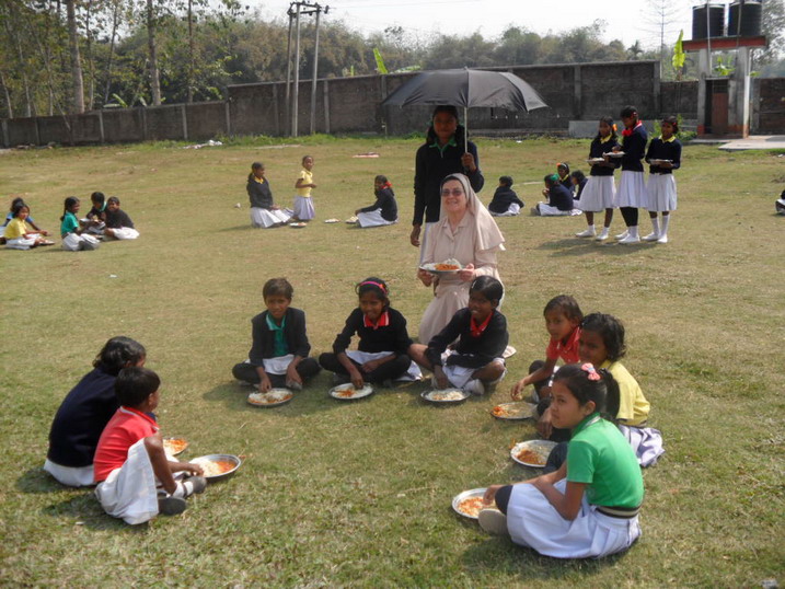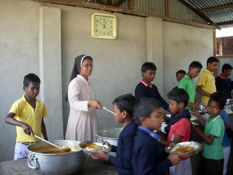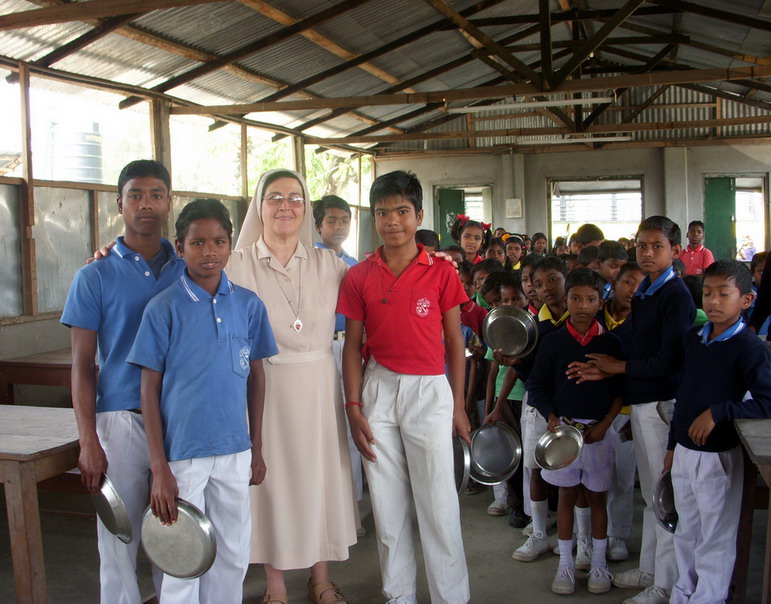 Suor M. Gincy coordina alla somministrazione dei pasto