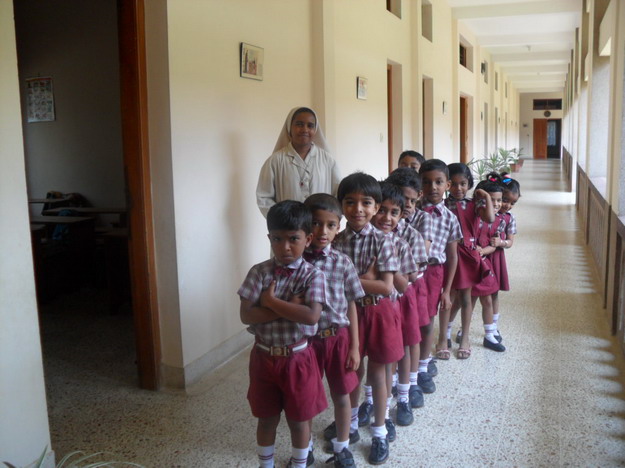 Suor M. Treesa con i bambini della sua classe
