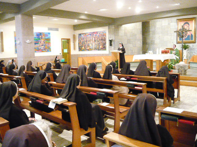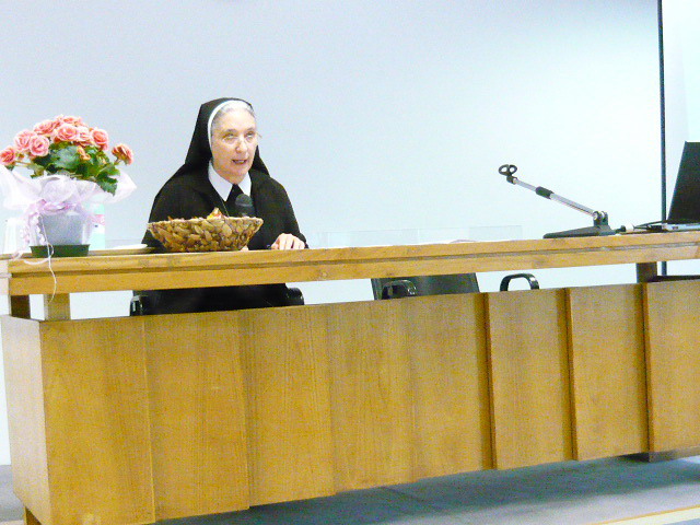 Madre M. Liana Calì introduce il secondo giorno di convegno con la preghiera e il diario dei lavori.