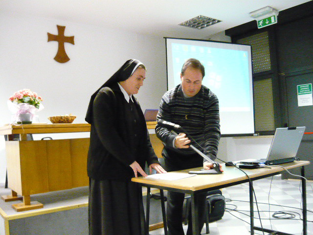Sr. Regina Mirashi, responsabile della scuola “Effata” per audiolesi, in Albania rende partecipe l’assemblea con una serie di slides, della genesi e della storia della scuola.