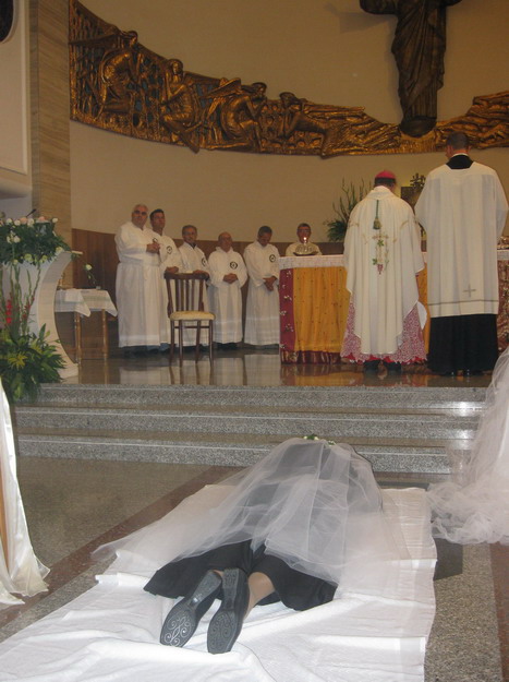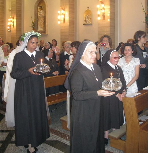 Festeggiamo la Professione Perpetua di Suor Mary Salomi e il 50° di Professione Religiosa di Madre M. Corrada Pittalà. Presiede la celebrazione solenne l'Arcivescovo S. E. Mons. Giovan Battista Pichierri, concelebrano il nostro confratello P. Carlo Diaferia, Superiore della Comunità dei Padri Rogazionisti a Trani e Padre Enrico Sironi dei Barnabiti che è il Vicario episcopale delle Religiose in Diocesi. Sono con noi le Consorelle provenienti da Altamura, da Oria e da Corato. Il Servizio liturgico è offerto dagli Associati di S. Antonio e il Coro S. Antonio esegue i canti. Vi partecipano i parenti di Madre M. Corrada e molta gente amica dell'Istituto. È una giornata molto bella e piena di emozioni e di sentimenti di gratitudine verso il Signore, verso la Chiesa, il Padre Fondatore e Madre Nazarena e verso le Superiore e tutto l'Istituto.