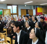 A Seoul si è celebrato il 25mo della presenza delle Figlie del Divino Zelo in terra koreana. La celebrazione Eucaristica di ringraziamento al Signore è stata celebrata da Padre Daniele Kim, rcj. Vi è stata una numerosa partecipazione dei familiari delle Suore, di amici e benefattori dell’ Istituto. Erano presenti anche la Consigliera generale, Sr M. Lisa Fineo, delegata della Madre generale per la Zona koreana. Insieme a lei anche la Consigliera della Delegazione N.S.G., Sr M. Placidia Meli, che hanno condiviso con noi la lode e il ringraziamento al Signore insieme all’intera Congregazione. All' inizio della liturgia è stata letta la benedizione del Santo Padre Benedetto XVI e a conclusione della celebrazione il messaggio augurale della Madre Generale, Madre Teolinda Salemi, a tutte le Figlie del Divino Zelo presenti in Korea.