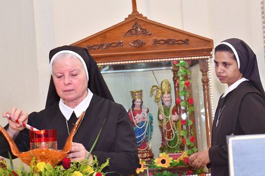 Durante la celebrazione Eucaristica, nella Parrocchia San Sebastiano, in Cochin gremita come sempre di fedeli, è stata accesa la lampada di ringraziamento; a questa lampada vengono accese altre cinque lampade che rappresentano le cinque comunità che operano in India: Cochin, Edavanakad, Vellarada, Sampaloor e Dhupguri. Sono presenti nella concelebrazione Padre Vito Lipari, Rogazionista, Sr M. Rosa Graziano, in qualità di Delegata della Zona Indiana,  numerose consorelle, le novizie, le Aspiranti, gli alunni, i genitori e gli amici dell’Istituto.