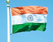 Descrizione della bandiera: La bandiera indiana, adottata ufficialmente il 22 luglio 1947, viene anche detta Tiranga, “tricolore” in sanscrito. Consiste di tre bande orizzontali, di uguali dimensioni: color zafferano quella in cima (simboleggia il coraggio), bianca quella al centro (che simboleggia la pace) e ha nel mezzo un chakra (ruota) blu con 24 raggi, e verde quella in basso (che simboleggia la prosperità). Il chakra originariamente al centro rappresentava la ruota di filatura di Gandhi, cioè l’autosufficienza. Venne in seguito rimpiazzata dalla Ashoka Chakra, la “ruota della legge” che si trova negli emblemi del III secolo a.C. I 24 raggi della ruota simboleggiano le 24 ore e il progresso costante.