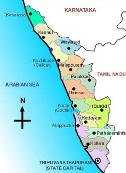 Esso è diviso in 14 distretti amministrativi; Thiruvananthapuram è la capitale dello stato mentre Kochi (Cochin) e Kozhikode seguono per importanza e dimensioni. La religione più praticata è l’induismo (56,1%), seguono islam (24,7%) e cristianesimo (19%), in un regime di reciproca tolleranza.