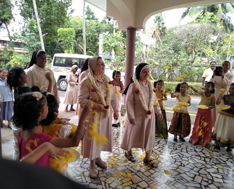 Lunedì 26 agosto, alle 08.00 (ora locale), la Madre M. Teolinda insieme all’Economa generale Suor M. Rita Di Domenico sono arrivate puntualmente all'aeroporto internazionale di Cochin (India), sono state accolte con grande entusiasmo dalle suore, tra cui la Superiora e le Consigliere della Delegazione e le Animatrici di comunità, aspiranti e postulanti.