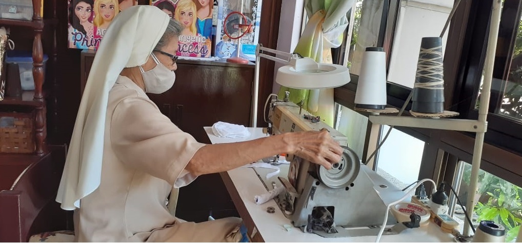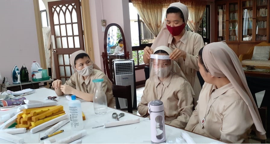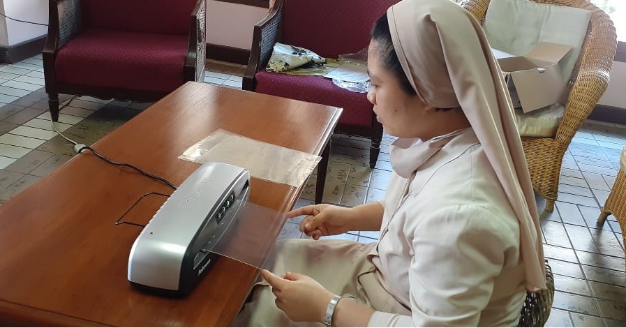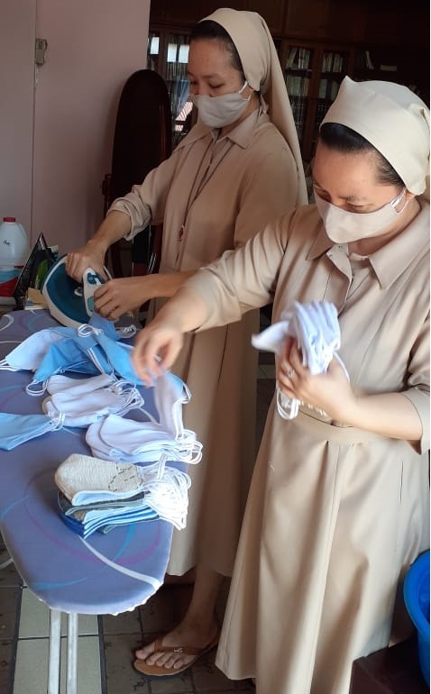 In questo tempo di quarantena per l’emergenza globale del covid19, le consorelle di Marikina (Filippine) aiutate dalle postulanti, hanno preso l’iniziativa di fabbricare le mascherine e gli schermi protettivi per distribuirli ai poveri che vivono nelle baraccopoli affollate e sono più a rischio. Insieme a questi si dà la distribuzione dei viveri.