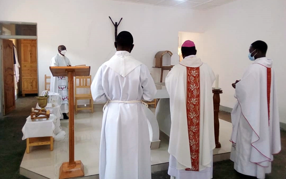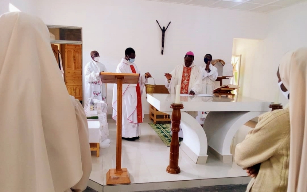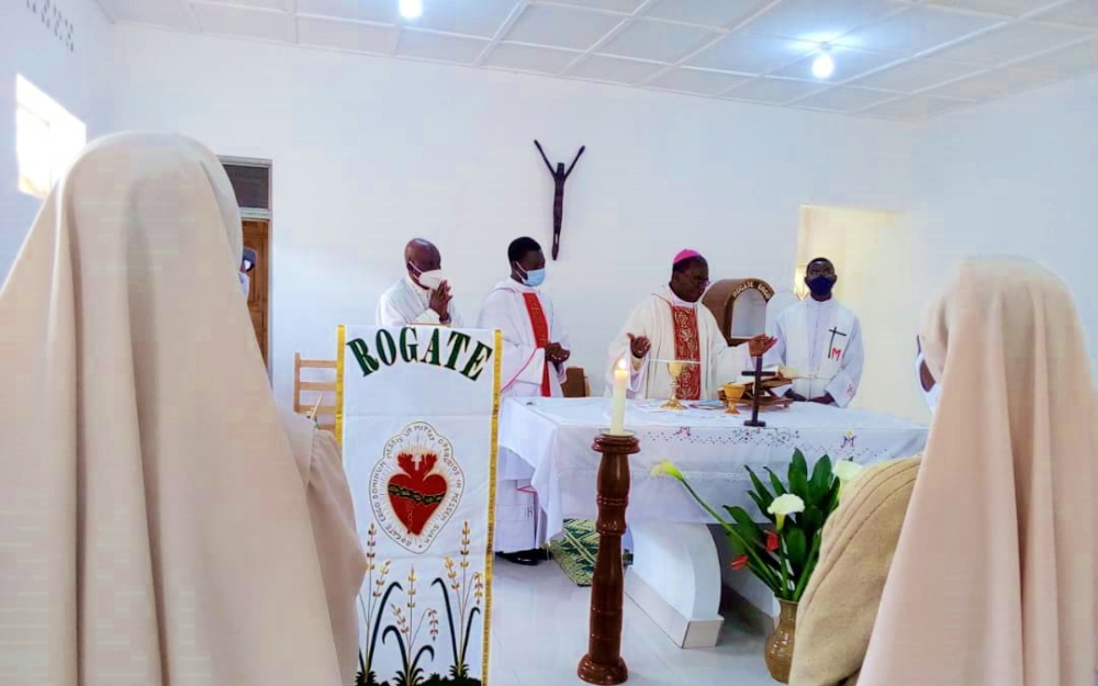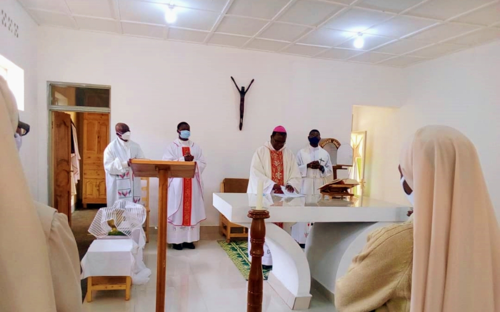 # Guardare le Foto (Cliccare giù)Le sorelle della stazione missionaria di Cyangugu dal 29 dicembre 2020 vivono nella nuova sede a Mibilizi, per iniziare una nuova attività apostolica. Per circa un mese non hanno avuto la presenza di Gesù Sacramentato, cosicché Il 30 gennaio 2021 c.a. il vescovo Mons. Céléstin, con altri tre sacerdoti si è recato presso la Comunità per celebrare la prima S. Messa nella Cappella della nuova casa e renderla sacramentale.