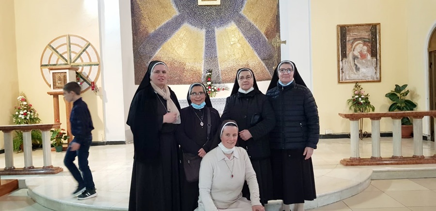 la Madre generale, Madre M. Teolinda Salemi, accompagnata dalla segretaria generale Suor M. Anna Diana,