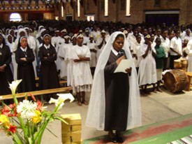 Arrivato il tempo di lasciare la mia famiglia d’origine a 22 anni di età ho sentito parlare delle Suore Figlie del Divino Zelo e ho cercato anch’io di conoscerle. Ho fatto esperienza con loro ed ho trovato il mio posto perché mi piaceva il Carisma “ROGATE”. Le Suore mi hanno accolto con gioia . Ma non c’è vita senza difficoltà; è arrivata la guerra nel 1994 che ha messo alla prova la mia fede e la mia speranza. Pensavo che tutto fosse finito, la situazione era grave, ma il Signore non mi ha abbandonata mai , è stato sempre il mio Pastore nulla mi è mancato e nulla mi mancherà ( Sl.22).