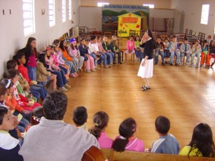 E, continuando nossa caminhada, vale lembrar que, em nossas visitas fazíamos também um convite às crianças e aos jovens para um encontro, onde aprofundaríamos o tema “Vocação”. Contamos com a participação de 33 jovens na noite de 06 de setembro e, na manhã do dia 07, com cerca de 150 crianças. Os jovens, com idade de 12 a 17 anos, foram acolhidos com muita alegria e tiveram a oportunidade de assistir ao filme “Caminhos Abertos – Vocações”, e de fazer perguntas sobre a vida religiosa, a vida dos leigos e sobre o matrimônio. Já, as crianças se divertiram com várias canções, com o teatrinho de fantoches sobre Sto. Aníbal e, dividas em grupos menores, de acordo com a faixa etária, participaram de dinâmicas e dramatizações com passagens do Evangelho.