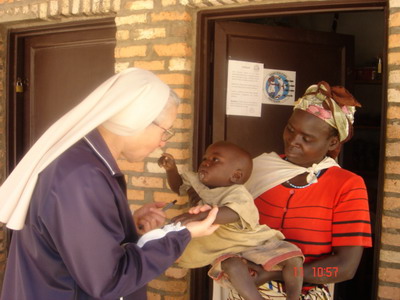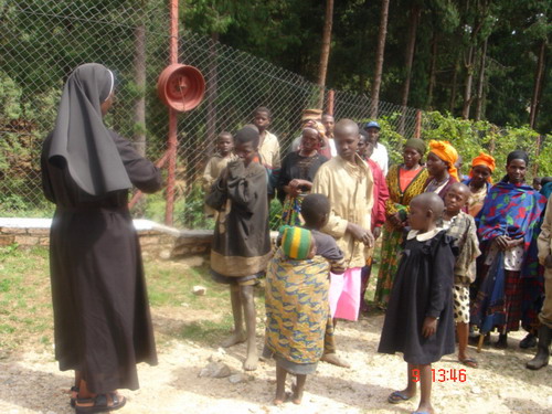 Il nove dicembre la Madre Generale ha raggiunto Gatare (campo missionaria), accolta dai canti e dalle danze e dal suono dei tamburi degli abitanti del Villaggio. Prende visione delle opere e del loro sviluppo: visita il Centro di Sanità, in particolare il servizio per i malati di AIDS, il Centro nutrizionale e gli annessi locali, gli ambulatori, la realizzazione del forno che è stato inaugurato a Novembre, la sala polivalente e la scuola elementare, costruita dal Comune di Roma e affidata alla nostra gestione, l’acquedotto il cui prolungamento, finanziato dalla ONG Amici dei popoli è in fase di completamento.