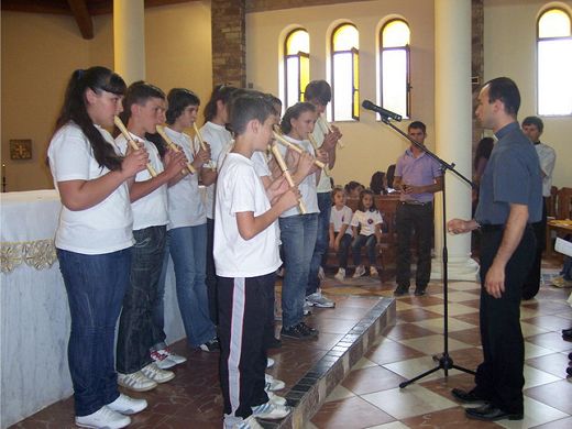 Alla fine della santa messa i bambini hanno presentato uno spettacolo in cui ogni classe ha preparato delle scenette sulla vita di p. Annibale, dei canti, danze, poesie e brani di flauto.