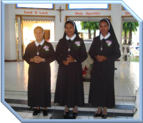 Nel pomerigio del 8 dicembre scorso, a Laoag City nella cappella di “Madre Nazarena Domus”, si è svolta la Prima Professione Religiosa di Suor M. Blandina, Suor M. Thresia Susana e di Suor Lillette Marie. Con gioia le comunità della delegazione ringrazia il Signore per il dono delle nuove sorelle, implorando per loro la grazia della perseveranza.