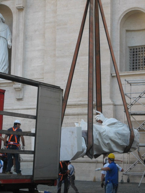 statua per terra. Successivamente è stata imbracata ed issata per essere